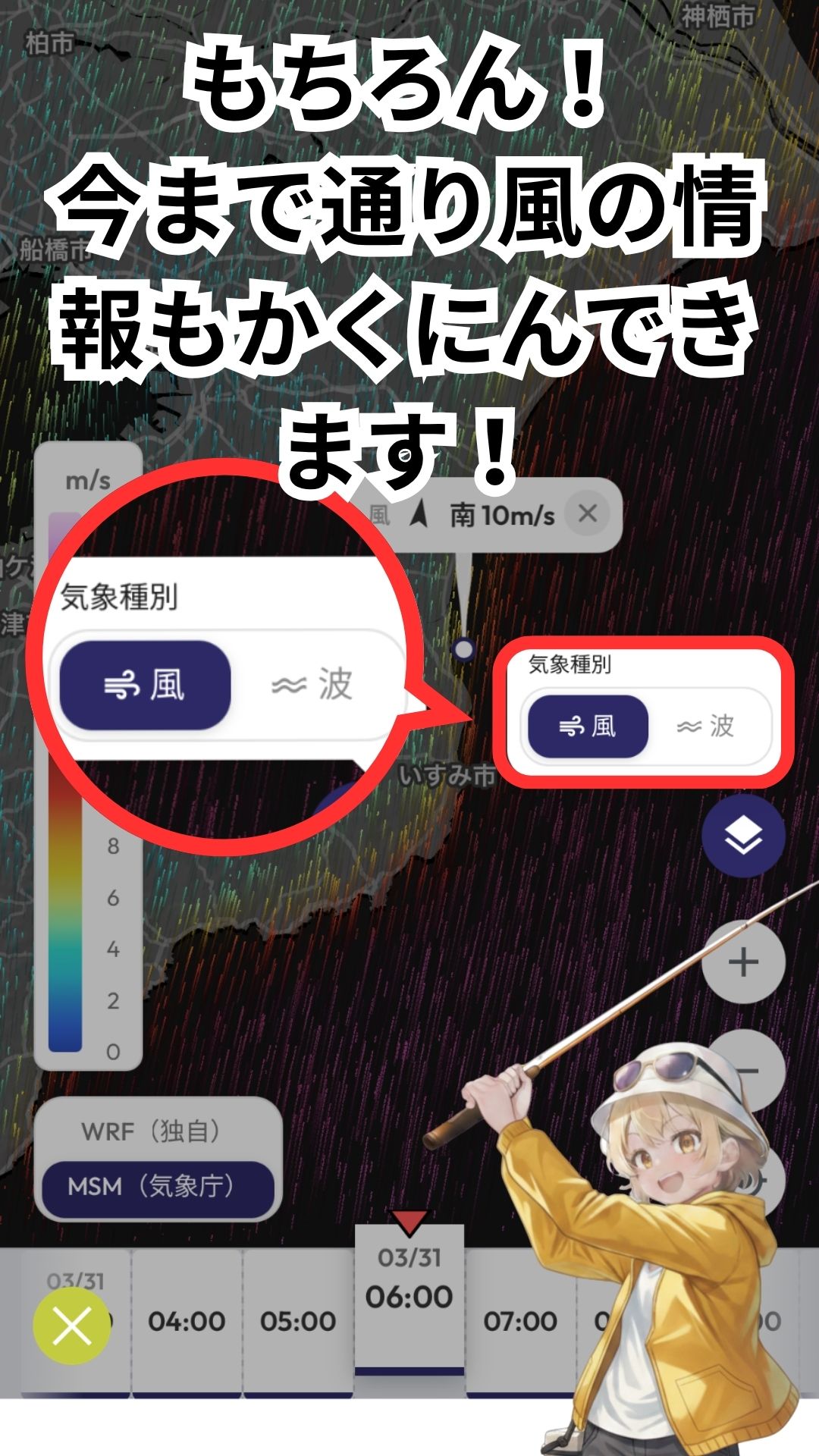 荒天が予想されるエリアを視覚的に避けることができ、より安全に海を楽しめます。